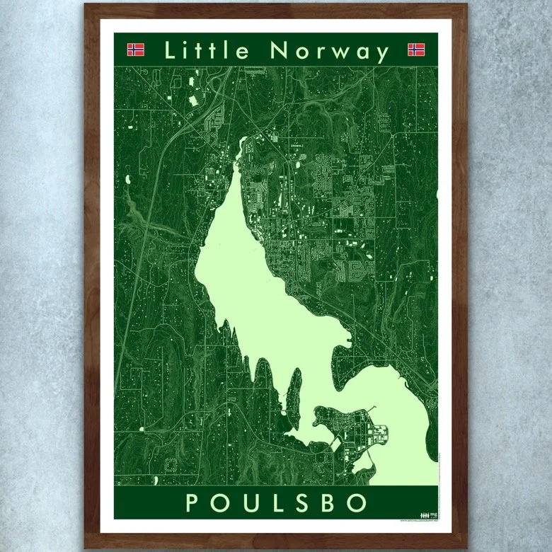Tacoma, Washington. Blue monochrome art map style print featuring roads and tracks, hydrology, elevation contours, and building foot prints.